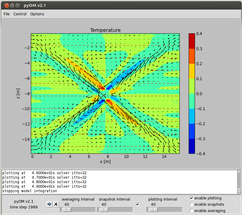 120 internal_wave1().run(snapint = 1.0 ,runlen = 50.0)