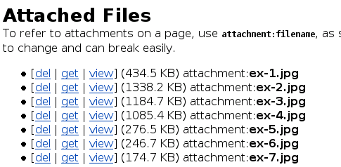 Do not use the URL of the [get] link you can see on the attachments upload page, since these links are subject to change and can break easily on reconfiguration of the wiki. To refer to files attached to other pages, use [[attachment:WikiName/filename.ext]].